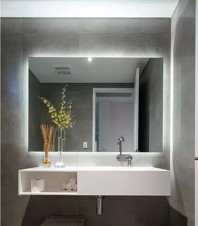 在鏡子周圍安裝燈帶是一種非常新潮的做法,
