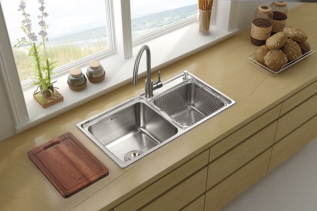 清理臺(tái)面時(shí)菜梗卡在了菜盆邊緣,廚余垃圾堵住了下水口,洗菜時(shí)水花四濺。廚房是家務(wù)最多最亂的地方,這些看似習(xí)以為常的問題其實(shí)并不是不能解決的,水槽選擇好問題就能解決一大半。那水槽該選擇什么樣的比較好呢?我覺得還是雙槽好,鍋碗瓢盆分的開,洗菜、洗碗兩不誤。