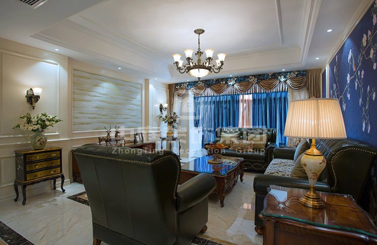 對(duì)于采光不好的客廳來講,其實(shí)也不需要太多的燈光源設(shè)計(jì)就么打造出一個(gè)不開燈也很明亮的空間,由于現(xiàn)代很多客廳都與陽臺(tái)相連,這樣就會(huì)令整個(gè)客廳的入深比較長(zhǎng),自然客廳采光也不那么好,尤其是樓層比較低的情況下,而采用不吊頂?shù)?/span>裝修設(shè)計(jì),讓乳白色的天花板與淺黃色的地板形成對(duì)比,拉出整個(gè)客廳的立體空間感,一盞中式風(fēng)格的羊皮吊燈配以沙發(fā)角處的落地?zé)?,完全能滿足整個(gè)客廳的照明需求,而且簡(jiǎn)約的豎長(zhǎng)壁紙電視墻裝修,又在視覺上拉長(zhǎng)了整個(gè)客廳的高度,配以從陽臺(tái)處微透進(jìn)來的光線,整個(gè)客廳明暗適宜,溫馨又舒適。