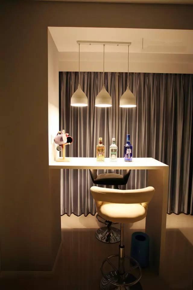 小巧的吧臺(tái)占據(jù)的位置非常小,利用陽(yáng)臺(tái)和客廳之間的位置,做上一個(gè)小吧臺(tái)吧,這里的光線(xiàn)又好,晚上欣賞夜景也方便,實(shí)在是提升吧臺(tái)浪漫程度的一個(gè)好地方!