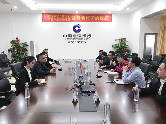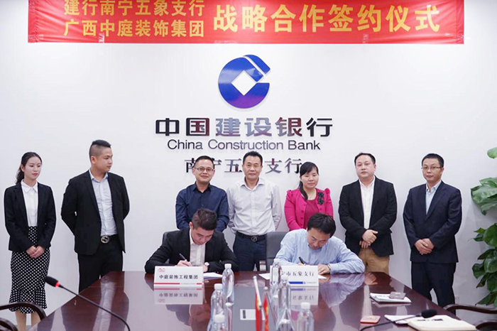 4月3日,中國建設(shè)銀行南寧五象支行與中庭裝飾集團,舉行“裝修貸款戰(zhàn)略作協(xié)議”簽約儀式。中國建設(shè)銀行五象支行郭行長、何副行長,中庭裝飾集團湯總、張總等一同參加了此次簽約儀式。