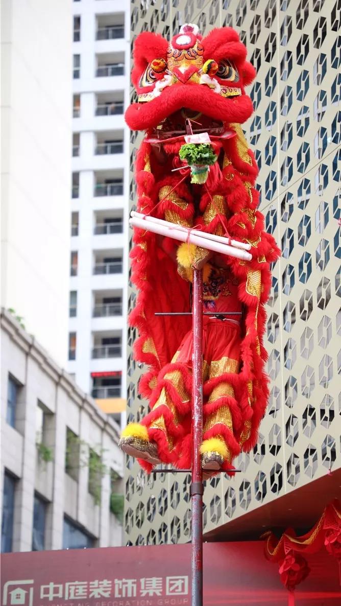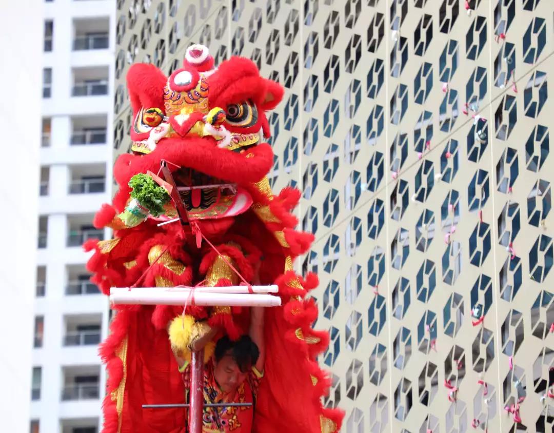 激揚的鼓樂陣陣響起,象征著吉祥和財富的雄獅迅猛登高,見青、喜青、望青、探青、采青。