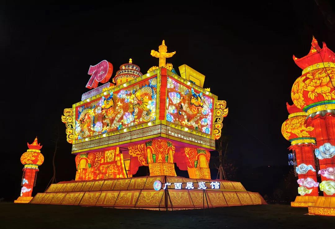 燈展切合新中國成立70周年的主題,結(jié)合廣西本土民族元素,目光所到之處,每個(gè)畫面都令人震撼。
