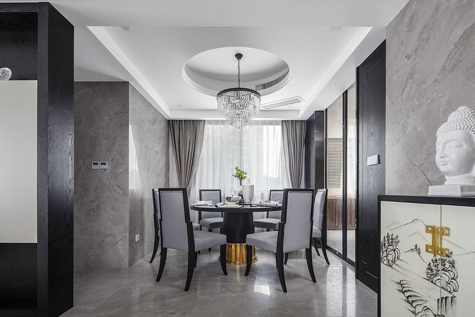 瀏覽量:368本案為142㎡新中式風格案例,以東方的"留白"美學觀念控制的風骨,顯出大家風范。設計師采用合理的布局,格調(diào)高雅,造型簡樸優(yōu)美,色彩濃重而成熟。謹以此作,表達對清雅含蓄、端莊豐華的新中式精神境界的追求。