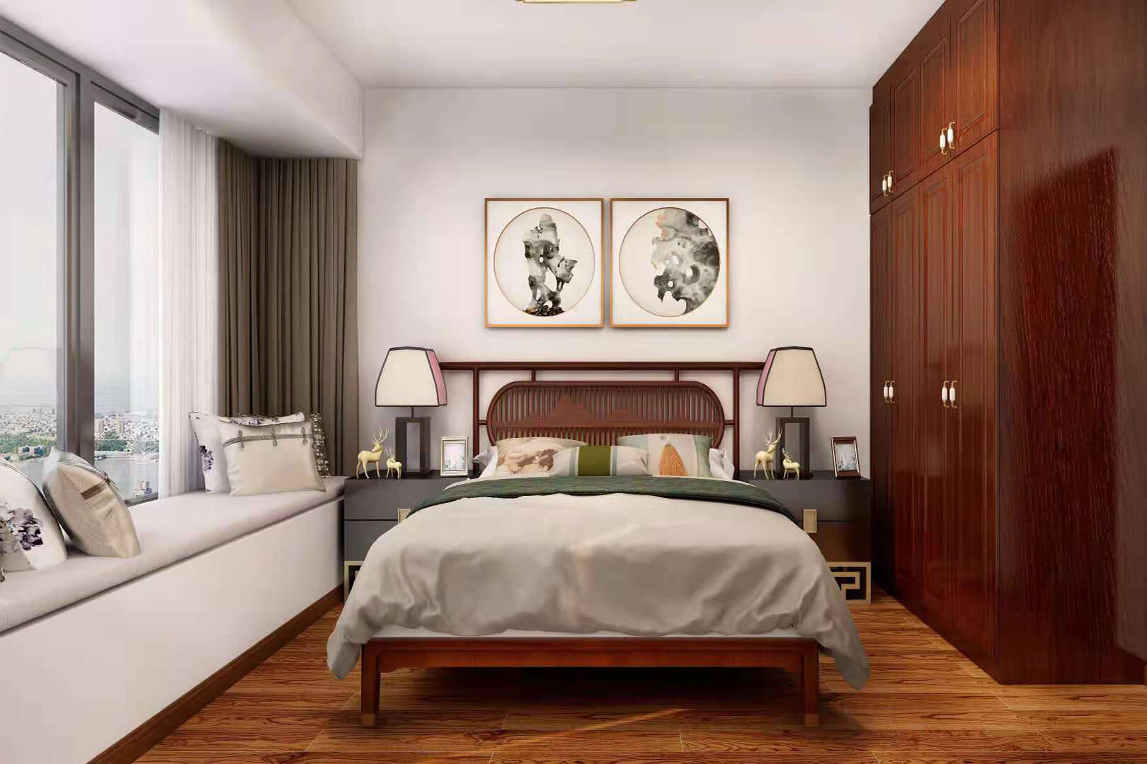 瀏覽量:552房子整體家具以紅木為主。客廳采用白色地磚和留墻面與家具搭配讓顏色看起來更為簡潔,不做裝飾的吊頂讓整體的空間看起來更寬大。房間采用紅木地板與房間家具色彩呼應,墻面留白用水墨畫裝飾讓房間裝飾更豐富,也讓色彩更多了層次感。