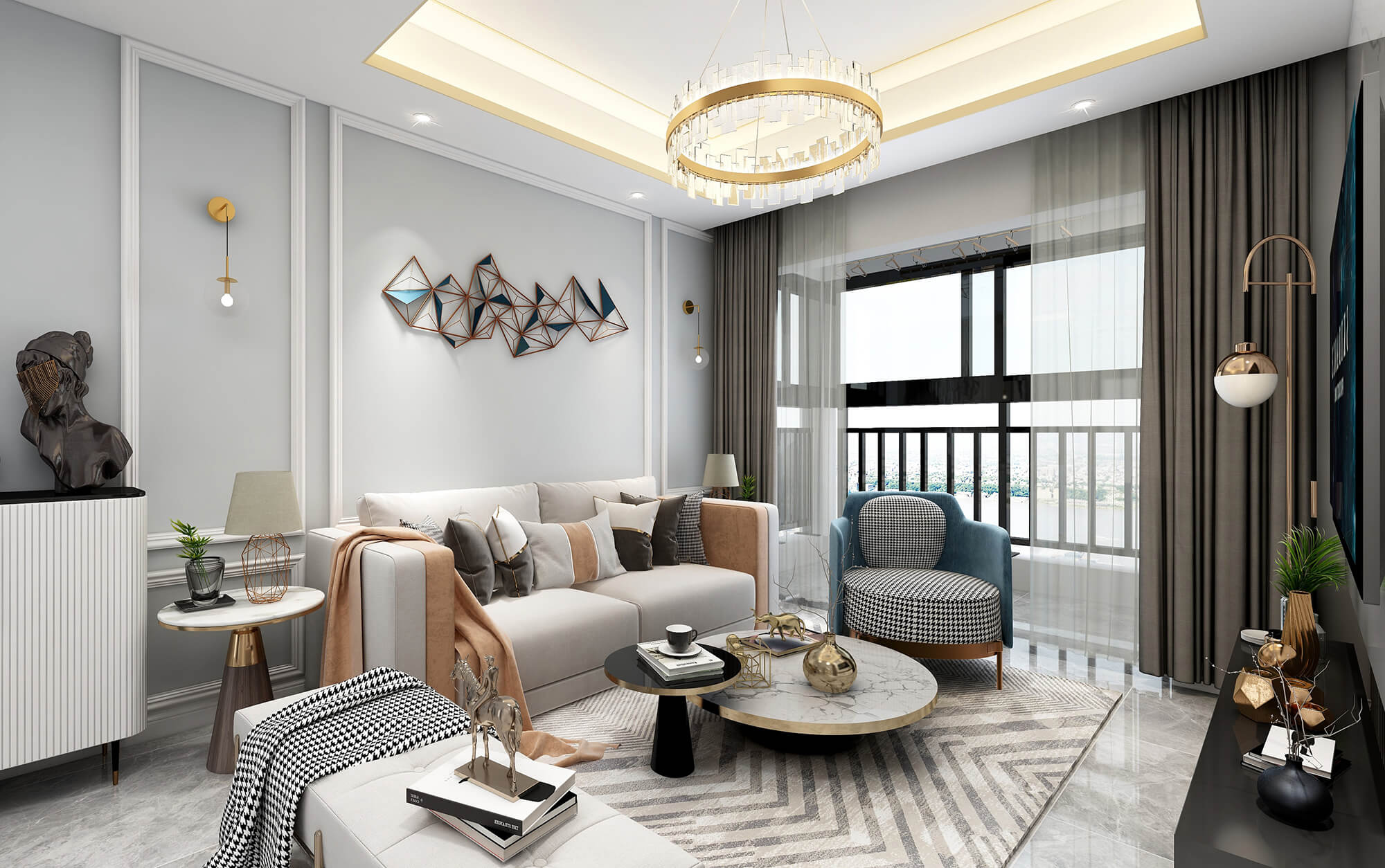 凱業(yè)花園85㎡現(xiàn)代輕奢風格案例