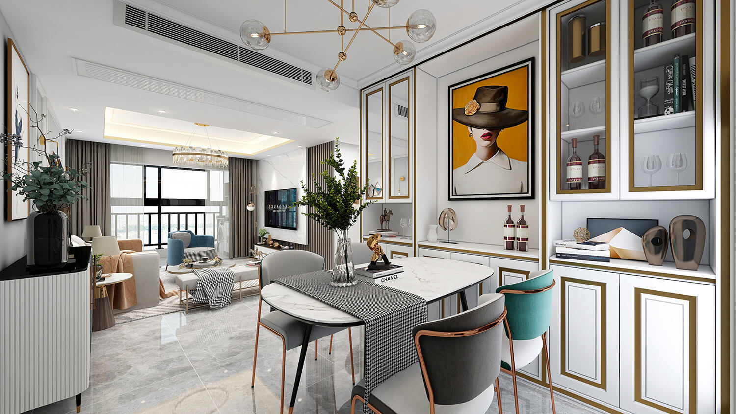 瀏覽量:558本案整體空間設計時尚大氣、舒適宜居。以淺灰為主色調(diào),在空間與家具中巧妙的糅合了金屬元素,營造出時尚前衛(wèi)的家居氛圍,適當?shù)牟AР馁|(zhì)、亮色作為點綴,增添精致質(zhì)感,形成了獨具特色的現(xiàn)代簡約輕奢風格。