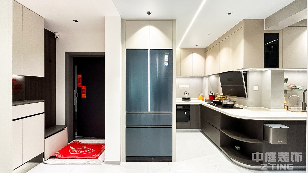這是一套130平的舊改案例。黑白灰的色調(diào)搭配,簡(jiǎn)潔而純粹,沒有過多的繁雜色彩,卻能營(yíng)造出一種高級(jí)感。