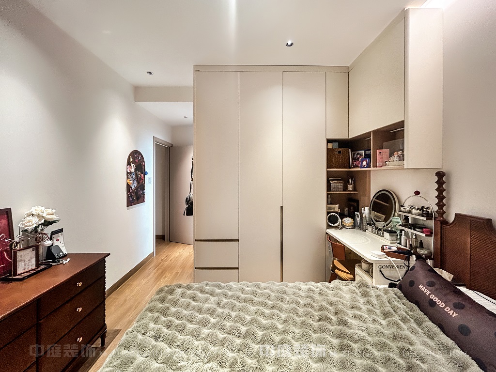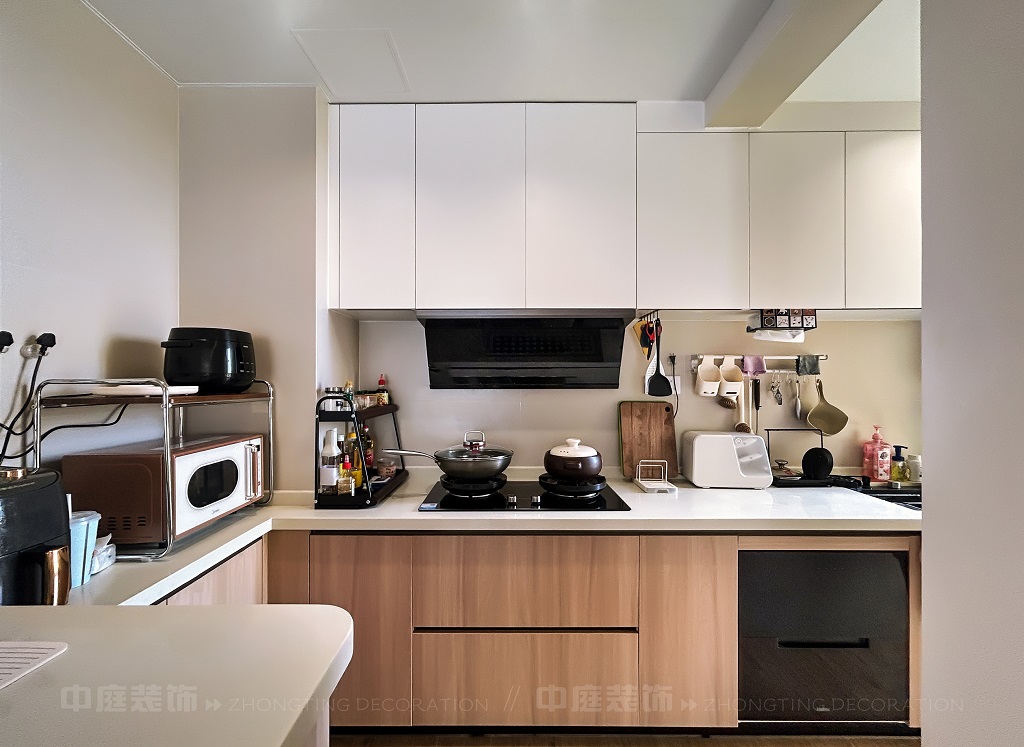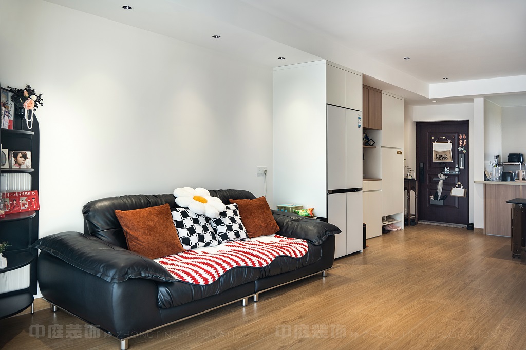 每一處細(xì)節(jié),都是他們對(duì)“把日子過成詩,讓家裝滿故事”的詮釋。以原木的溫潤(rùn)、白調(diào)的清爽為基底,在玄關(guān)處嵌入復(fù)古邊幾,擺上藝術(shù)感的裝飾畫,仿佛時(shí)光在此打了個(gè)溫柔的結(jié);餐廚區(qū)的咖啡角裝滿對(duì)生活的小確幸,與開放式廚房的煙火氣交融,是晨起的咖啡香與深夜的飯菜香的浪漫邂逅;客廳里,黑色皮沙發(fā)搭配復(fù)古風(fēng)抱枕,一旁的藝術(shù)綠植蜿蜒生長(zhǎng),就像主人對(duì)生活的熱愛肆意又熱烈。