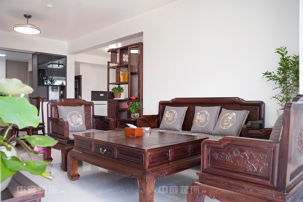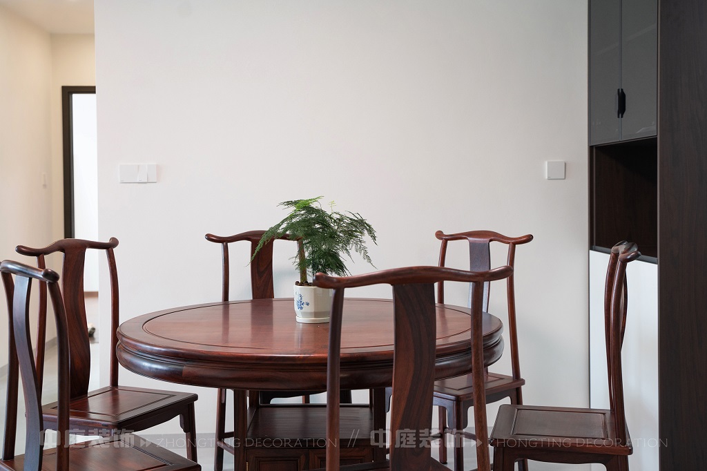 瀏覽量:177全屋以深色實木家具為主,雕花工藝精致細膩,盡顯中式家具的古樸質(zhì)感。搭配帶有傳統(tǒng)紋樣的抱枕,在細節(jié)處傳遞中式美學。空間中綠植點綴其間,與木質(zhì)家具相得益彰,營造出自然清新的氛圍。無論是客廳的沙發(fā)組合,還是茶室的茶桌茶具,亦或是餐廳的圓桌設(shè)計,都在簡約的現(xiàn)代空間里,勾勒出中式家居的典雅與詩意。